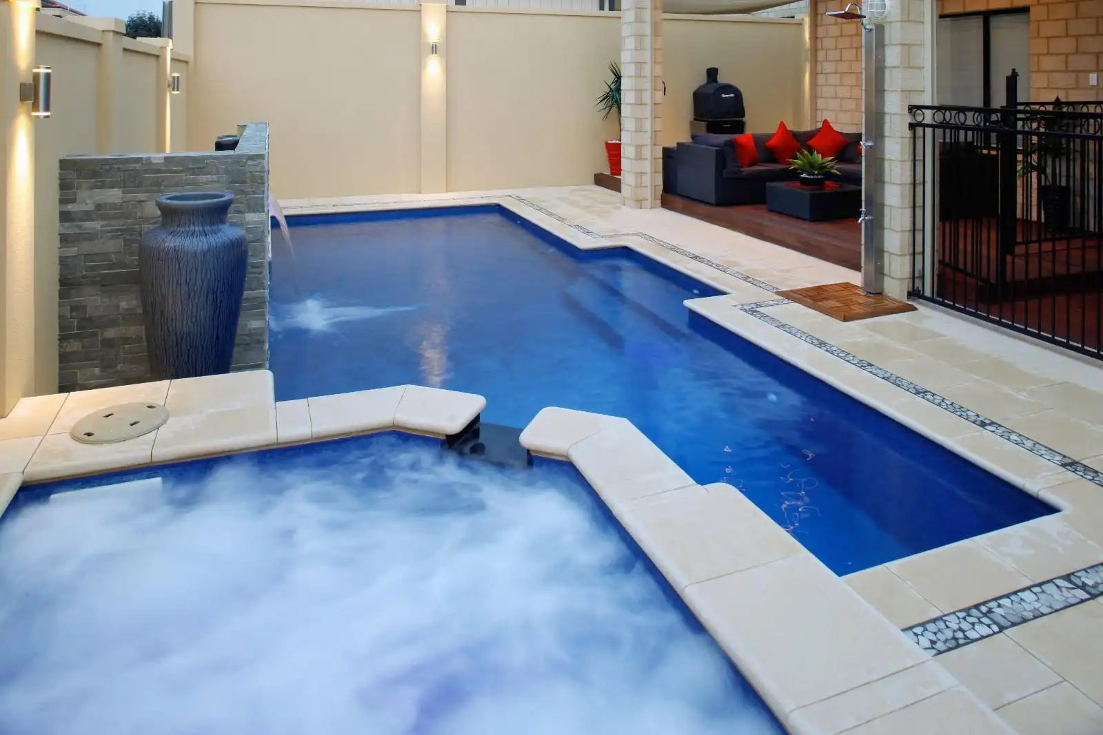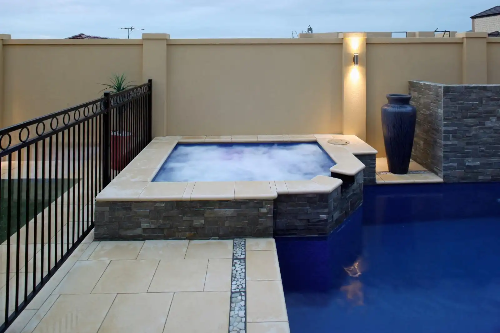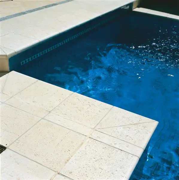 Roma Travertine Paving and Overhanging Lip Pool Capping